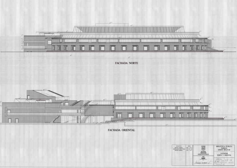 Planos de las fachadas norte y oriental de la Biblioteca Pública Virgilio Barco