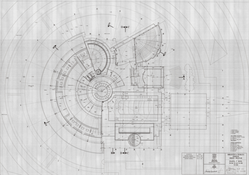 Planos de la planta del tercer nivel de la Biblioteca Pública Virgilio Barco