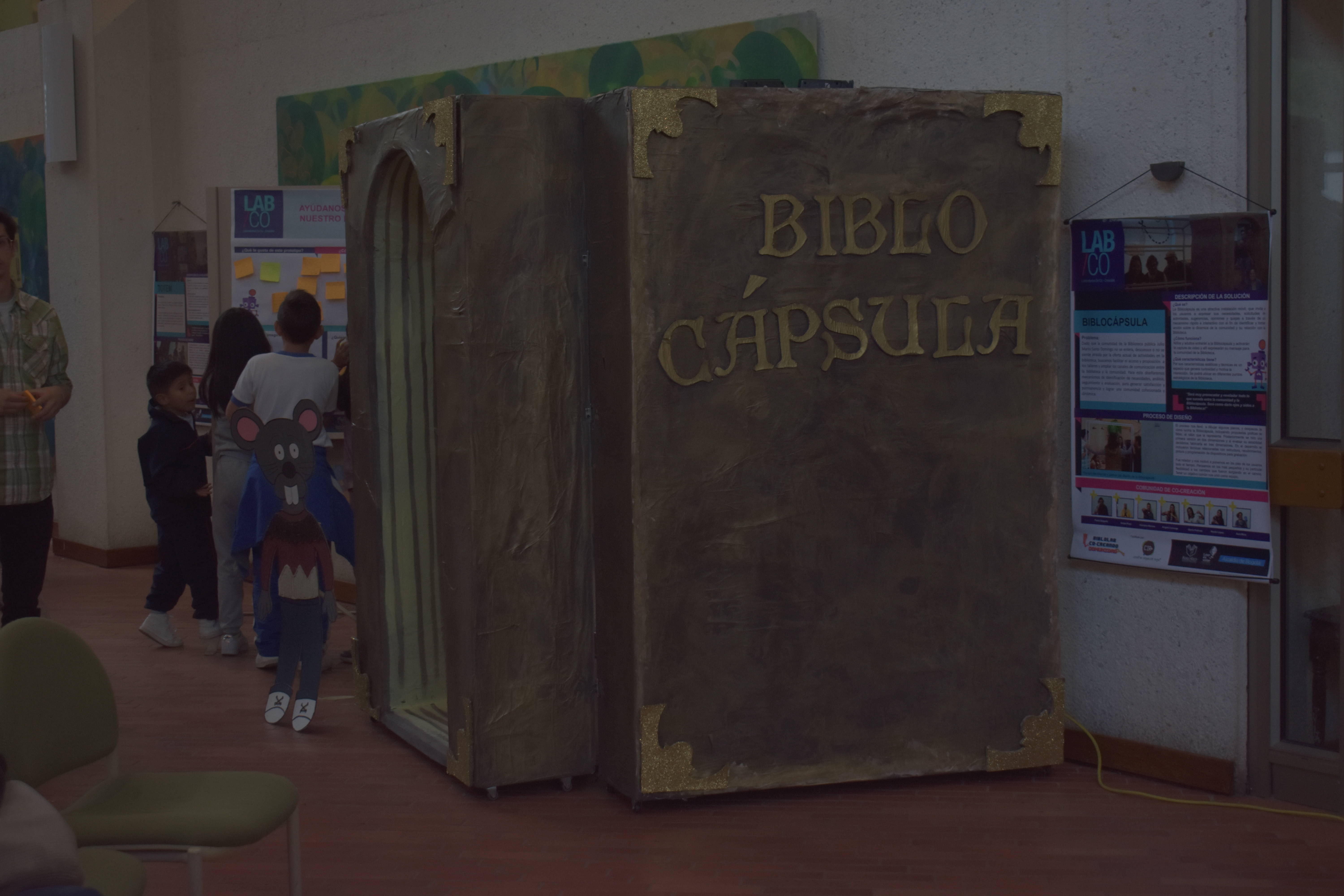 Fotografía del prototipo final de la biblocápsula, desarrollada en el Laboratorio de Co-creación de la Biblioteca Pública Julio Mario Santo Domingo, en el segundo semestre del 2018.